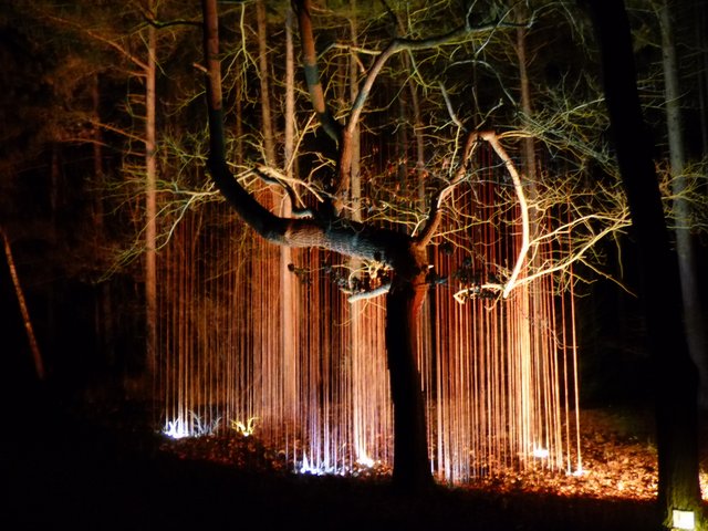 19 april 2018In september 2016 zette ik een paar lampen op de installatie 'Verbinding' die ik maakte voor LekArt in Culemborg. Sindsdien maakte ik verschillende lichtinstallaties, meestal door de takken van een boom te verbinden met de grond waaruit de boom gegroeid is. Ik deed dit vooral voor nachtelijke wandeltochten. Maar ik doe meer. Ik zal met lichtinstallaties experimenteren in een schuur op de Kunstschouw. Ik ga een lichtinstallatie maken op het Oranjewoudfestival in het kader van Leeuwarden Culturele Hoofdstad 2018 (zie vorige blog).