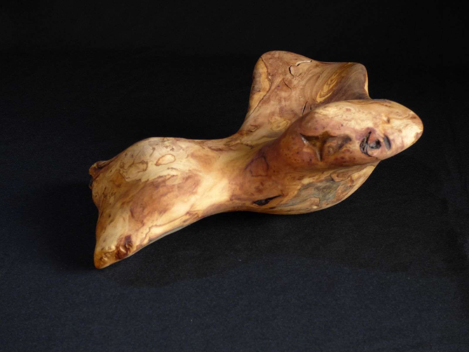 krijgen. Ik zag een vrouwfiguur ontstaan, maar wilde er nog niet aan; het zou een abstracte sculptuur worden. Maar uiteindelijk kon ik er niet omheen, het was te mooi om te laten liggen. Dus werd het een ruggelings liggende vrouw, deed me denken aan een kruising tussen de Venus van Milo en het schilderij l'origine du monde. Mag ik het dan 'l'origin du