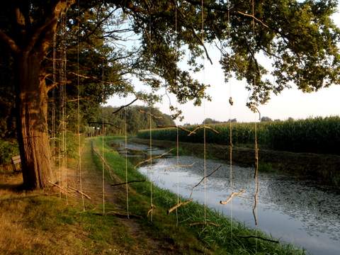 11 mei 2016Ik had het wel een beetje gehad met mijn 'dwarrelende takken', mijn eerste buiteninstallatie. Maar toen ik die boom boven die vijver bij Lonneker had gezien kon ik het niet meer loslaten; op die plek kan ik me niets mooiers voorstellen. Zaterdag gaat het gebeuren.