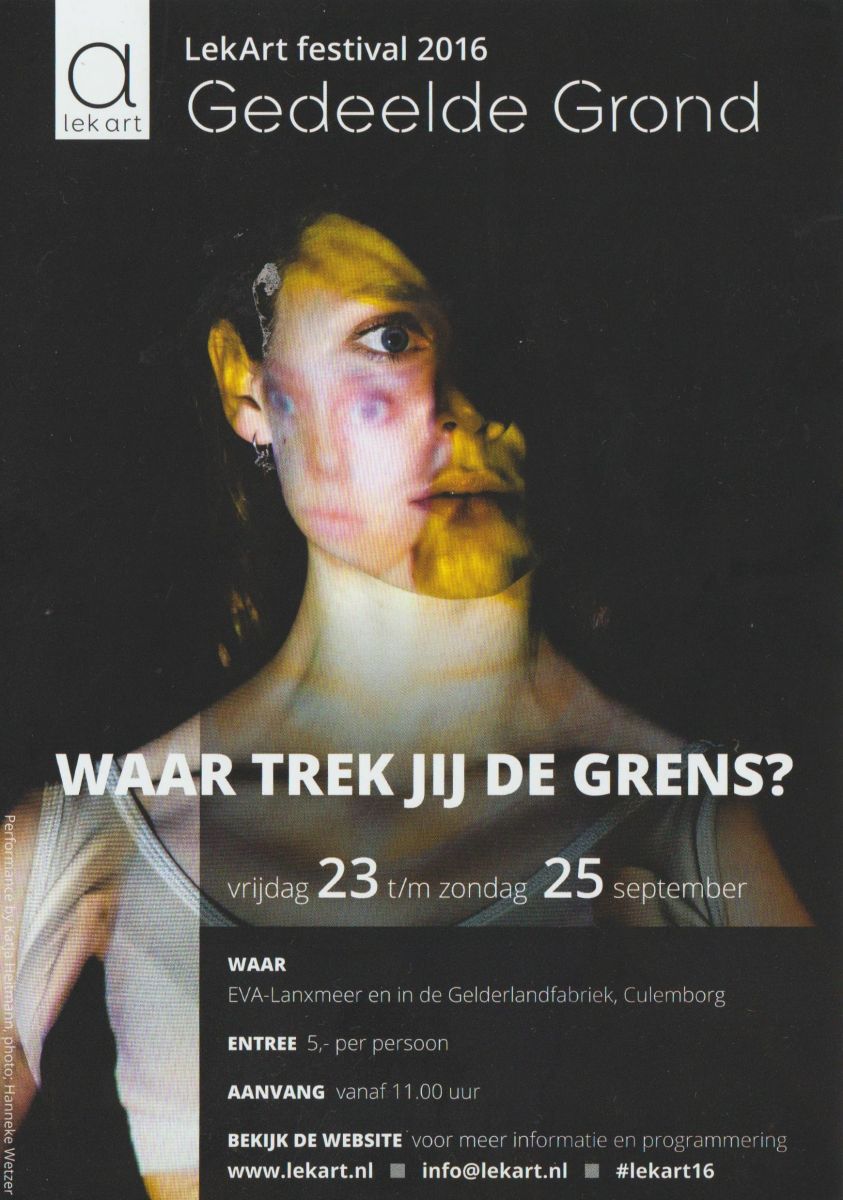 Het daaropvolgende weekend exposeer ik op twee plekken. LekArt is een tweejaarlijks kunstfestival in Culemborg, dat dit jaar gehouden wordt in de ecologische woonwijk EVA-Lanxmeer. Het thema is 'Gedeelde grond. Waar trek jij de grens?” De bewoners uit de wijk delen letterlijk hun grond met kunstenaars en bezoekers doordat zij hun huizen, tuinen en hoven openstellen. De kunstroute start bij de Gelderland-fabriek naast het station, 23 t/m 25 september van 11 tot 17 uur. Ik ga een installatie te maken in de appelboomgaard, in drie appelbomen, met de titel 'Verbinding'.Zelf ben ik waarschijnlijk meer te vinden bij de Kunstroute Culemborg die gelijktijdig in het centrum gehouden wordt. Ik exposeer mijn houtsculpturen bij herenmodezaak Marc Culemborg aan de Binnenpoort 10.