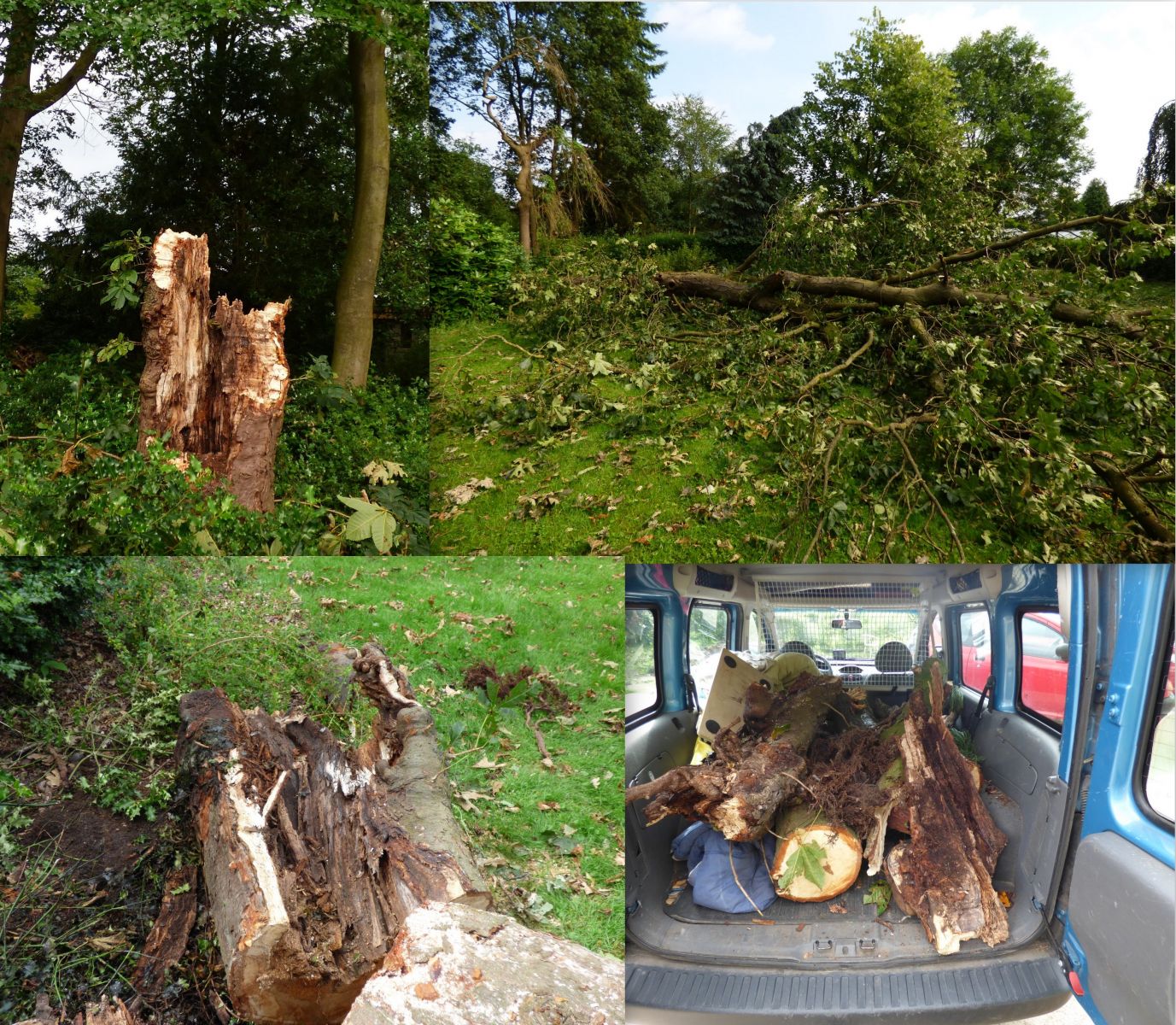 19 augustus 2016Op 28 juni bezocht ik de Pastorietuin in het Brabantse Heeze. Ik kwam de tuin bekijken omdat ik er vanaf 21 augustus meedoe aan een expositie met de titel 'Vervreemdend'. En vervreemdend was het; een week eerder raasde een storm door Heeze. In het hele dorp, ook in de Pastorietuin, was sch